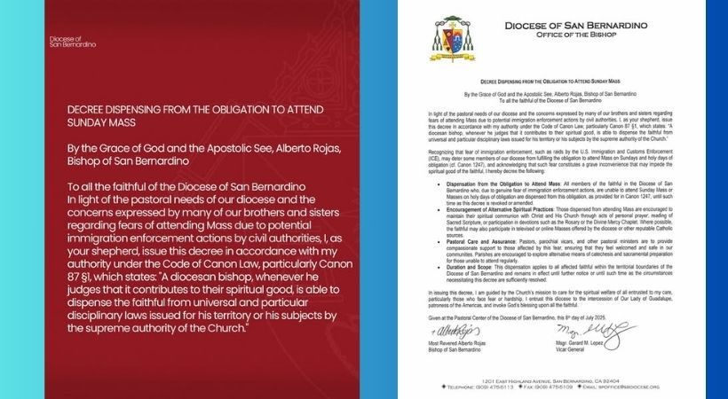 ചൊവ്വാഴ്ചയാണ് ബിഷപ്പ് റോജാസ് തന്റെ ഉത്തരവ് പ്രഖ്യാപിച്ചത്. “കുടിയേറ്റ നിയന്ത്രണ നടപടികളെക്കുറിച്ചുള്ള യഥാർത്ഥ ഭയം കാരണം, കടമയുടെ വിശുദ്ധ ദിവസങ്ങളിൽ കുർബാനകളിൽ പങ്കെടുക്കാൻ കഴിയാത്ത ജാൻ ബെർണാർഡിനോ രൂപതയിലെ എല്ലാ അംഗങ്ങളെയും വിശ്വാസികളെയും ഈ ബാധ്യതയിൽ നിന്ന് ഒഴിവാക്കുന്നു,” അദ്ദേഹം ഉത്തരവിൽ വ്യക്തമാക്കി. അതേസമയം, വിശ്വാസികൾ ബദൽ ആത്മീയ ആചാരങ്ങളിൽ ഏർപ്പെടാൻ റോജാസ് പ്രോത്സാഹിപ്പിച്ചു.