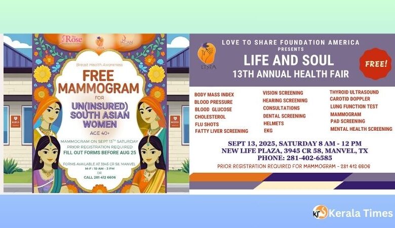 ഹൂസ്റ്റണിൽസൗജന്യആരോഗ്യമേളസെപ്റ്റംബർ- 13 ന്ശനിയാഴ്ച