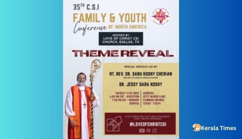 35-ാമത് സി.എസ്.ഐ. കുടുംബ യുവജന കോൺഫറൻസ്  തീം പ്രകാശനം നവംബർ 25 നു ഡാലസിൽ, ബിഷപ്പ് സാബു കെ. ചെറിയാൻ മുഖ്യാതിഥി.