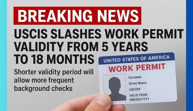 തൊഴിൽ അംഗീകാര രേഖകളുടെ (EADs) പരമാവധി കാലാവധി അമേരിക്കൻ പൗരത്വ, കുടിയേറ്റ സേവന വിഭാഗം (USCIS) ഗണ്യമായി കുറച്ചു. സുരക്ഷാ പരിശോധനകൾ ശക്തിപ്പെടുത്താനും വഞ്ചന തടയാനും വേണ്ടിയാണ് നടപടിയെന്ന് ഏജൻസി അറിയിച്ചു.