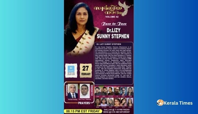ഡിട്രോയിറ്റ് :ലോകപ്രശസ്തമായ മ്യൂസിക് ലൈവ് സ്ട്രീമിംഗ് പ്രോഗ്രാം ‘സ്വർഗ്ഗീയനാദം’ വോള്യം 42-ന്റെ ഭാഗമായി സംഗീത വിരുന്നും മുഖാമുഖം പരിപാടിയും സംഘടിപ്പിക്കുന്നു. ഫെബ്രുവരി 27 വെള്ളിയാഴ്ച നടക്കുന്ന പരിപാടിയിൽ പ്രശസ്ത യുവജന പരിശീലകയും അധ്യാപികയുമായ ഡോ. ലിസി സണ്ണി സ്റ്റീഫൻ മുഖ്യാതിഥിയായി പങ്കെടുക്കും.