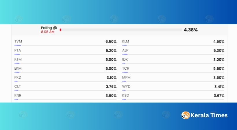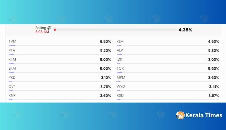 ഇതിനിടെ, കീഴരിയൂർ വെസ്റ്റ് ലോവർ പ്രൈമറി സ്കൂളിലെ വി.വി.പാറ്റ് മെഷീനിൽ തകരാർ സംഭവിച്ചതിനെ തുടർന്ന് വോട്ടെടുപ്പ് ഒരു മണിക്കൂർ വൈകി ആരംഭിച്ചു.