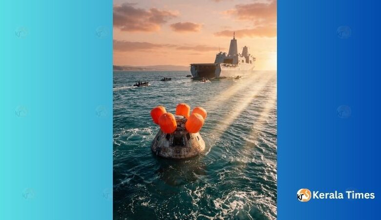 ബഹിരാകാശത്ത് പുതിയ അധ്യായം: ചന്ദ്രയാത്ര കഴിഞ്ഞ് ഓറിയോൺ പേടകം സുരക്ഷിതമായി സമുദ്ര ത്തിലിറങ്ങി.